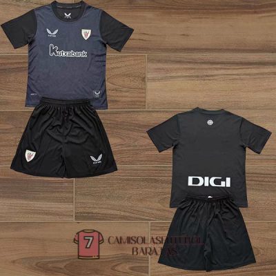 camisola athletic bilbao crianca equipamento 2025-2026 guarda redes preta cinzenta