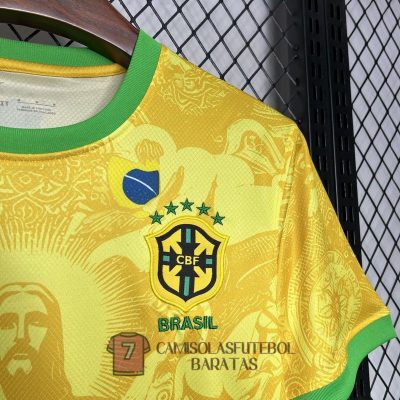 Para torcedoras que buscam modelagem ajustada e detalhes exclusivos, a camisola Brasil feminina garante caimento perfeito e identidade marcante. E celebre a essência do país com a edição especial camisola Brasil Cristo Redentor, estampada com o ícone carioca e inspirada na paixão verde e amarela.
