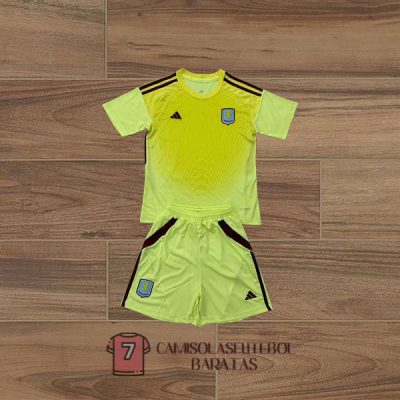 camisola aston villa crianca equipamento 2025-2026 guarda redes amarelo