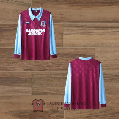 west ham united camisola retro primeira manga comprida 1995-1997