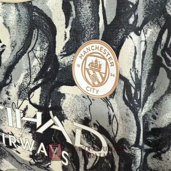 camisola manchester city crianca equipamento 2025-2026 edicao especial preta cinzenta horse year