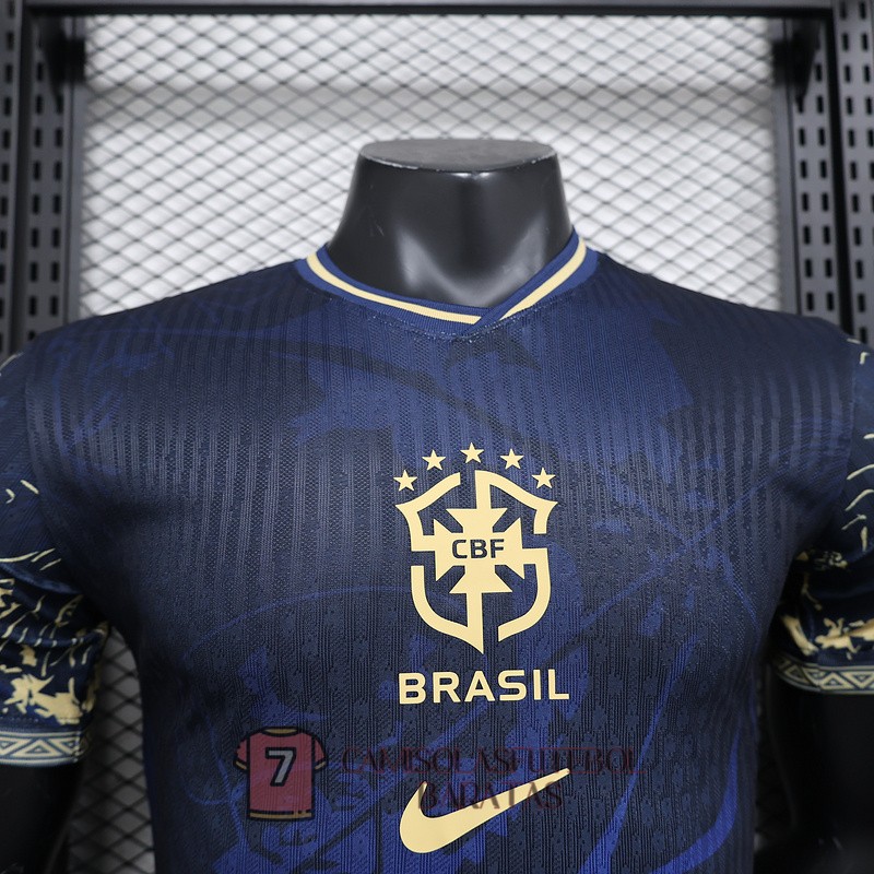 brasil camisola edicao especial versao do jogador azul escuro 2024-2025