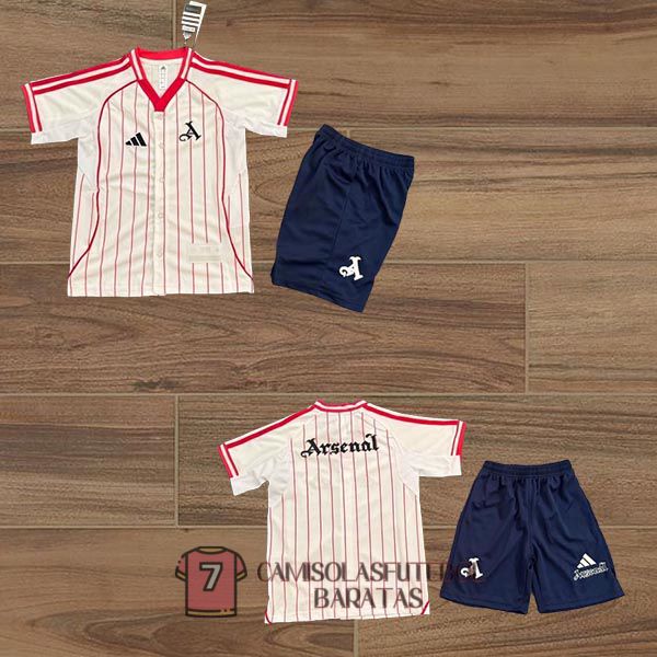 camisola arsenal crianca equipamento 2025-2026 edicao especial arroz branco vermelho baseball