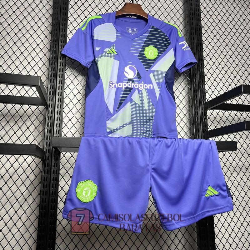 camisola manchester united crianca equipamento 2024-2025 guarda redes purpura