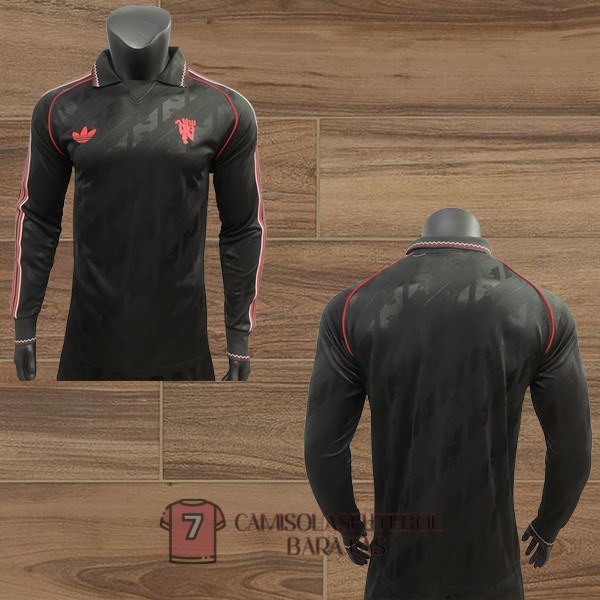 manchester united camisola manga comprida edicao especial versao do jogador preta