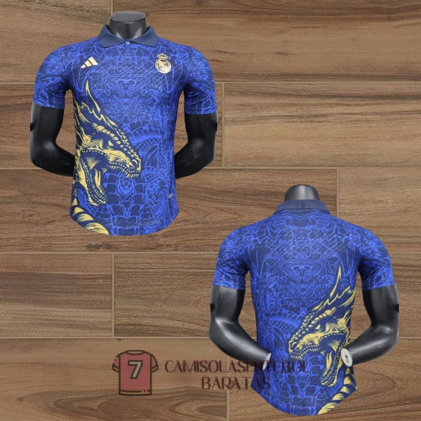 real madrid camisola edicao especial versao do jogador dragon azul amarelo 2024-2025