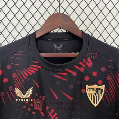 sevilla camisola treinament preta vermelho 2025-2026